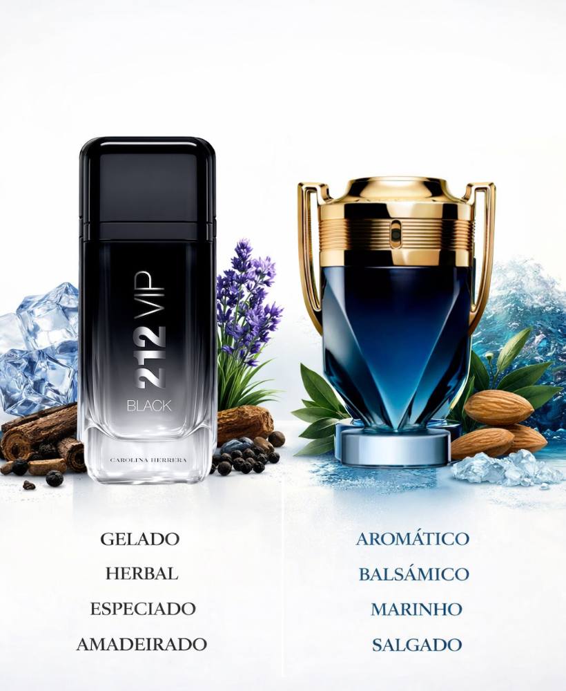 Já o Invictus Parfum traz uma assinatura moderna e marcante, combinando acordes marinhos, aromáticos e amadeirados que passam sensação de força e confiança.