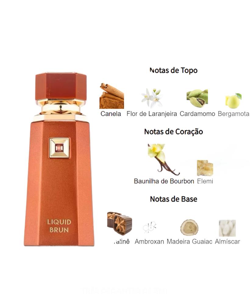Liquid Brun de French Avenue é um perfume Amadeirado Masculino. Liquid Brun foi lançado em 2024. As notas de topo são: Canela, Flor de Laranjeira, Cardamomo e Bergamota. As notas de coração são: Baunilha de Bourbon e Elemi. As notas de fundo são: Pralinê, Ambroxan, Madeira Guaiac e Almíscar.