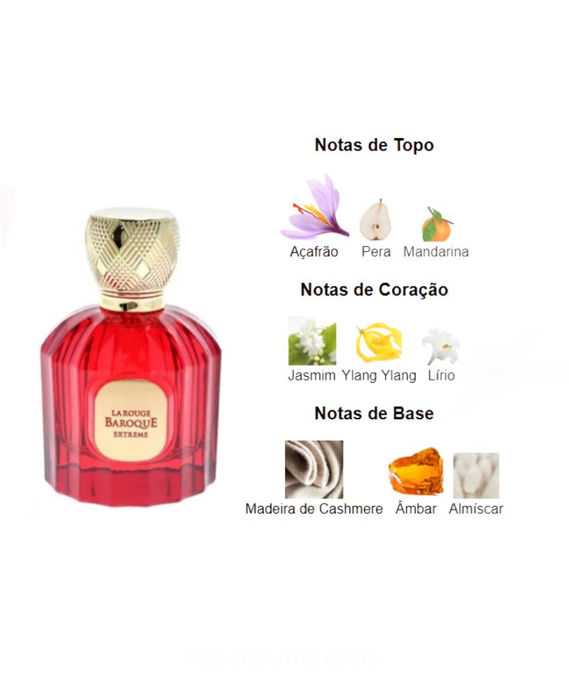 Decante 100% original do perfume La Rouge Baroque Extreme - Maison Alhambra, retirado diretamente de frasco lacrado e enviado em frasco de vidro com borrifador e vedação segura.