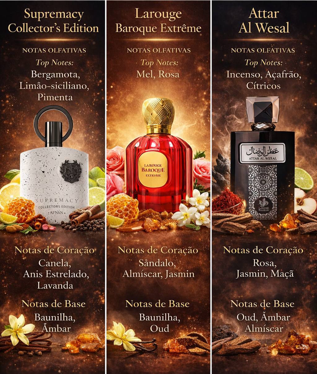 Um combo com três fragrâncias de alta presença, pensado para quem quer impacto real — não perfume “fraco” de rotina.